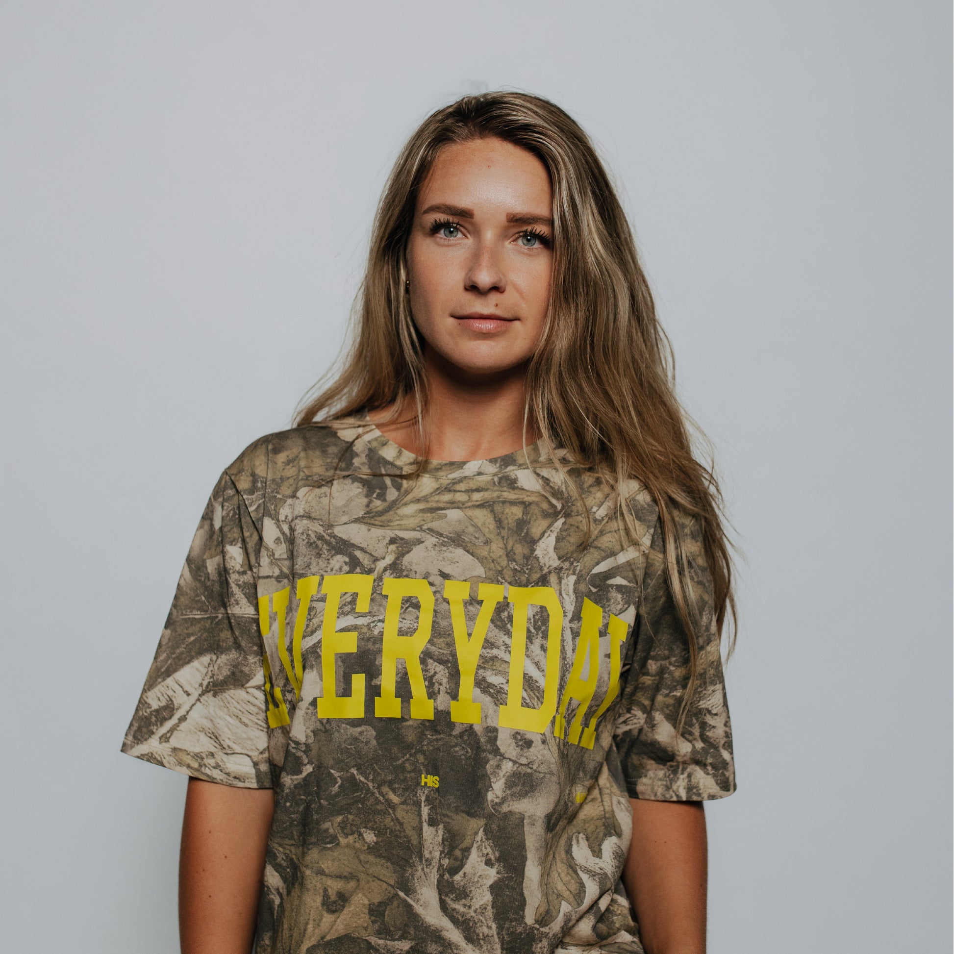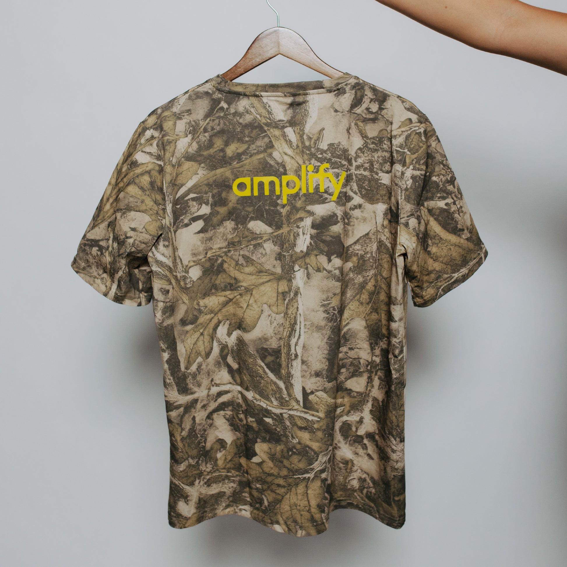 Make a bold statement with our Oversized Custom Camo Tee. This short-sleeve shirt features a fully dyed custom camo sublimation print with vibrant yellow lettering that declares: “EVERYDAY AMPLIFY HIS NAME.”